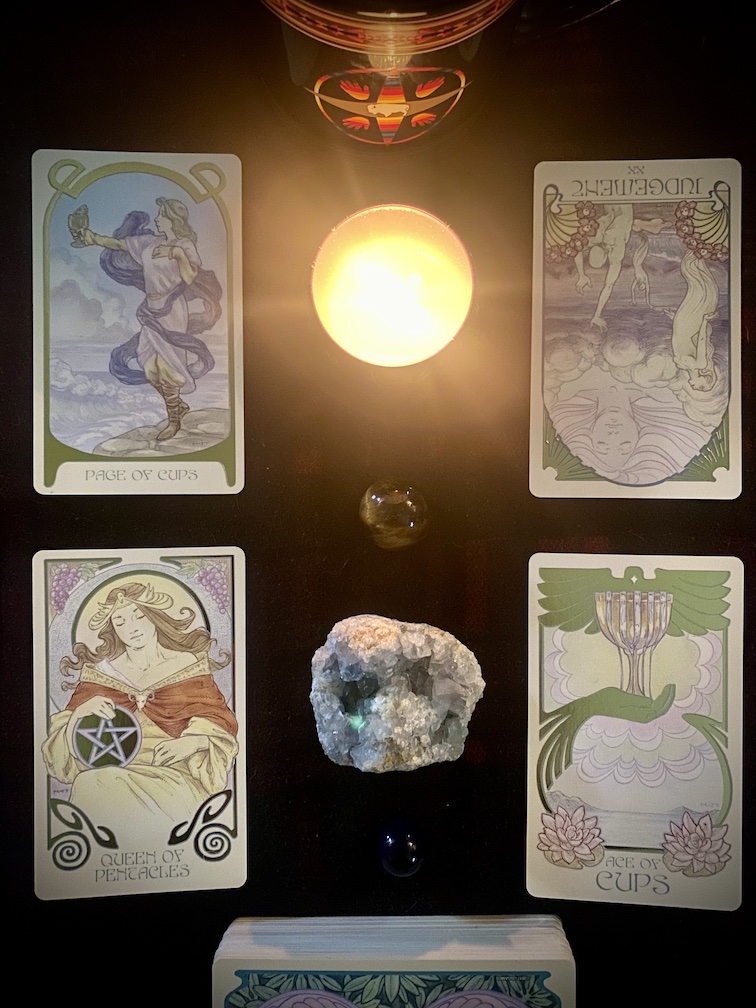 —Drawn during the Jupiter|Neptune conjunction exact in Pisces— Page of Cups.Queen of Pentacles.Judgement[r].Ace of Cups symbolizing an invitation in where you are supported fully however the fate is yours, your offer the reward. Spirit’s tune: Constantly judging people by the ounce of the heart.