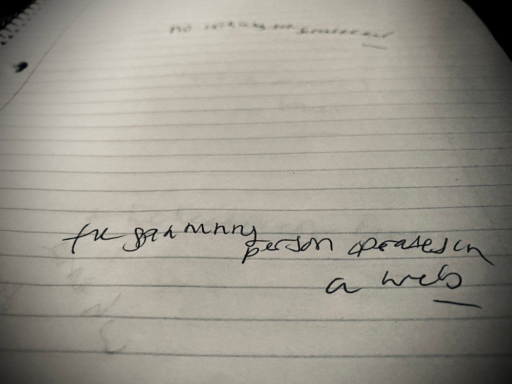 The spinning person operates in a web.