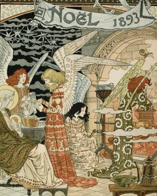 ‘The Kitchen of the Angels’, cover of “L’Illustration” of Christmas 1893, by Eugène Grasset || Masculine and I watching fire at campground—people putting out big thing with thing not safe and I called out. Us doing work for people and I kept straightening up blanket, he did too. OCD. Immediate immigrant lady. Reminds me of the person I used to be – Awaken in this body. Contact people in the body. Contract people in the body. Didn’t we get so much organizing done today. –me wrapping extension cord –me washing clothes/loads. I went into the camera because I almost did.